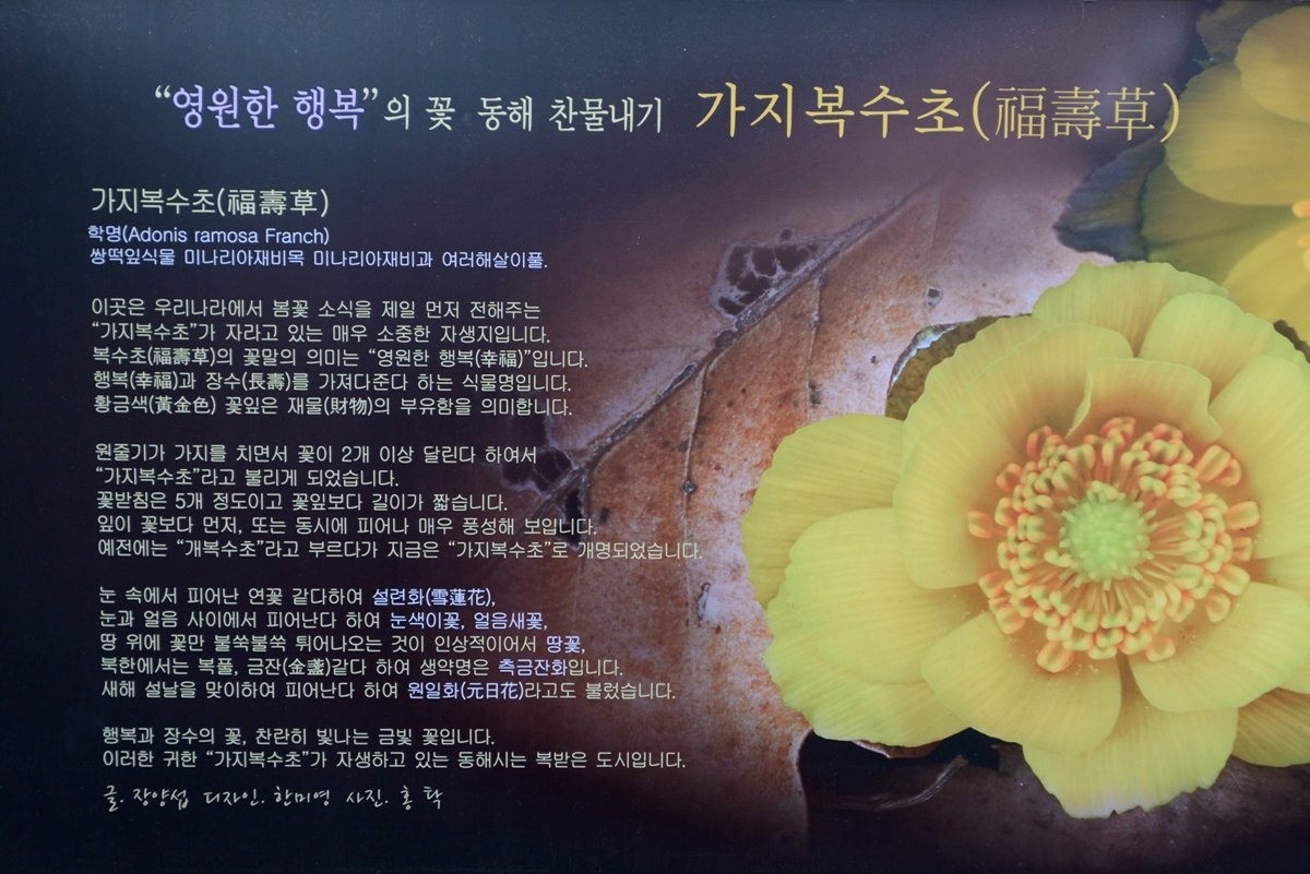설명까지 곁들인 복수초의 화려함 만큼 새해 복 많이 받으세요