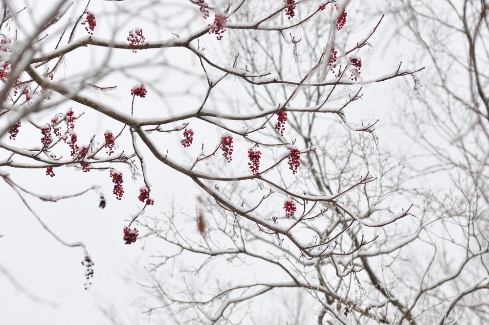 눈속에 예쁜 빨간 사람 열매가 두 송이........ ㅎ~