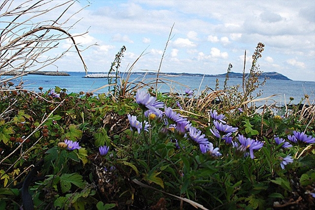 푸른 하늘 그리고 바다와 함께 어우러진 쑥부쟁이꽃이 넘 아름답습니다.