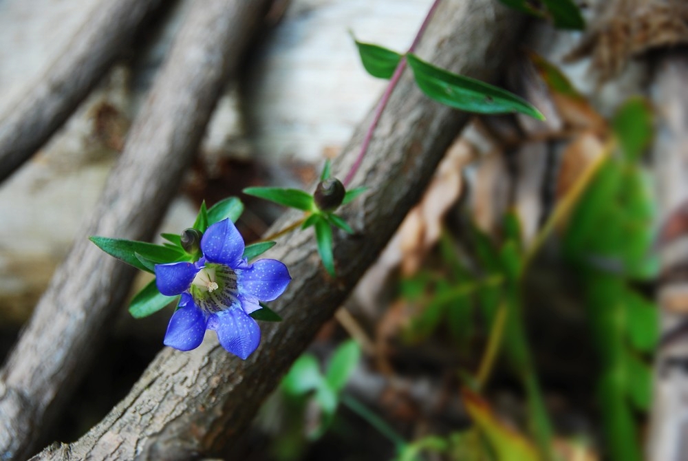 용담이 나무가지 에 기대어 가는 가을을 따사로운 햇살속에 즐기고 있네요~~