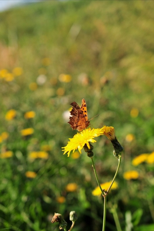 노오란 꽃에 앉은 ..