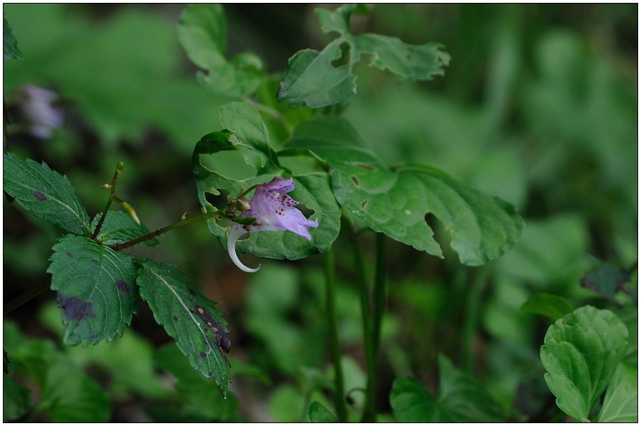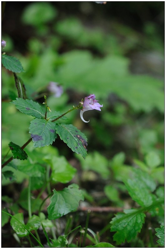 꼬마물봉선 ㅡ 물봉선에 비해 꽃의 크기가 1/2 정도 밖에 되지 않고, 하악편이 급격히 좁아지며 거가 약 한바퀴 이내로 감긴다.