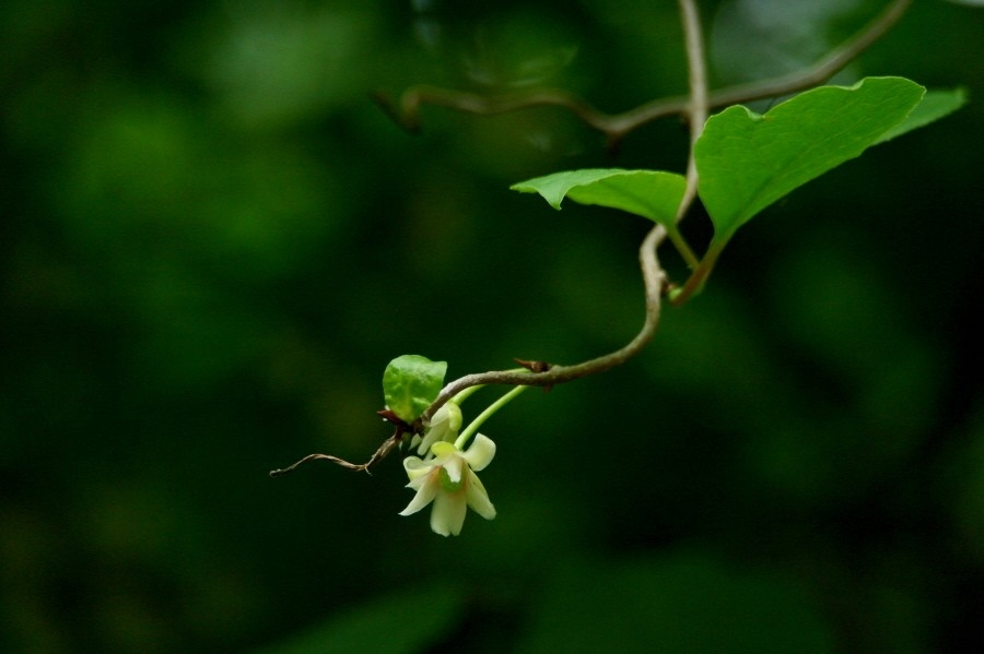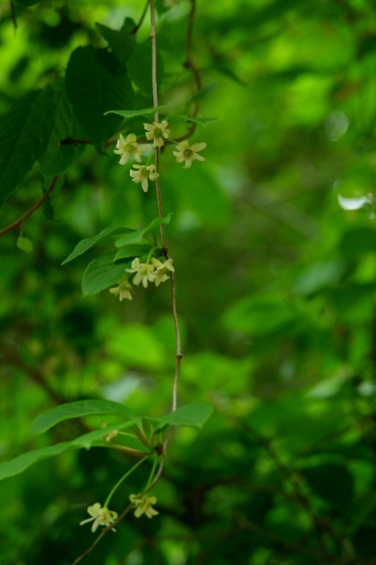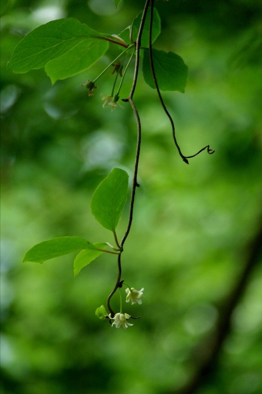 늘어진 덩굴 끝에 매달린 오미자 꽃이 앙증 맞습니다!