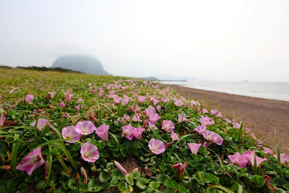 백사장을 뒤덮고있는 갯메꽃....... 정말 장관입니다.