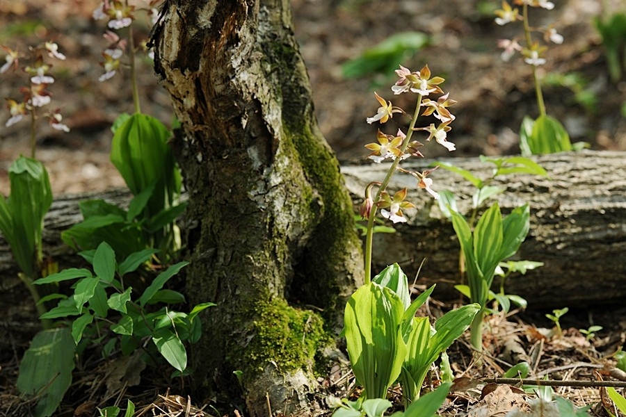 비스듬한 나무 옆에 꿋꿋이 선 새우난초 정말 좋습니다.