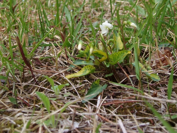 잎에 노랑 무늬가 있습니다. 노랑 무늬 흰젖제비꽃(???)...