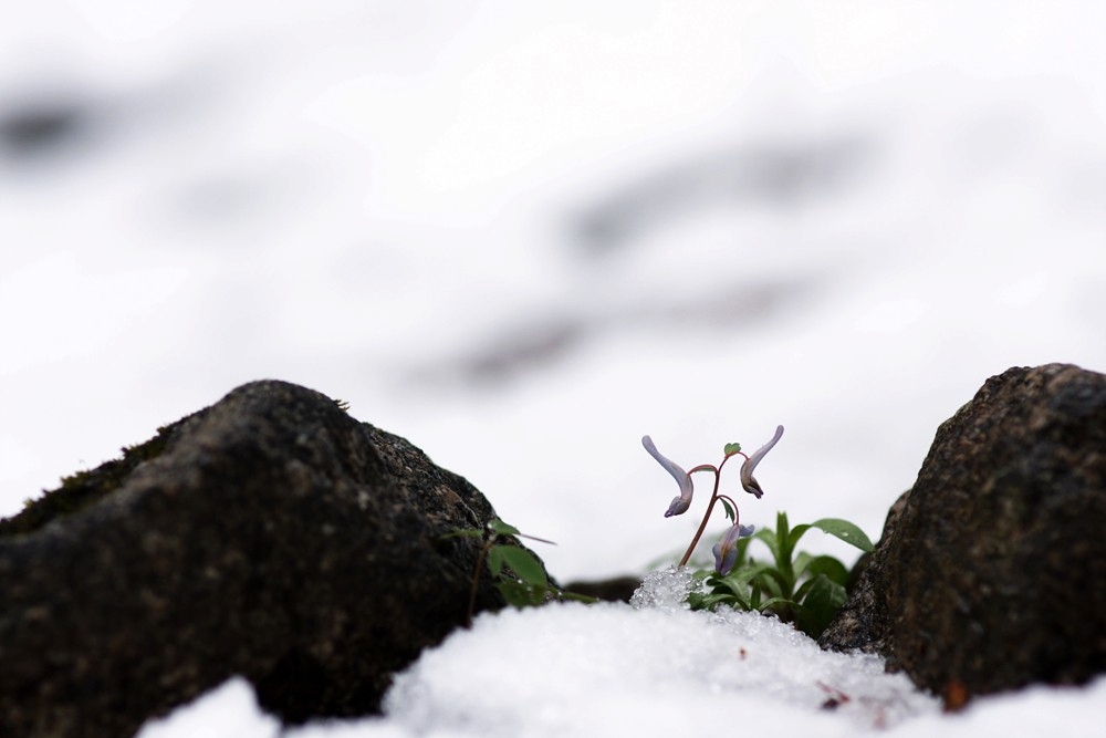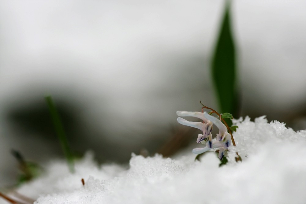 눈속에 묻힌 현호색이 예쁘네요.