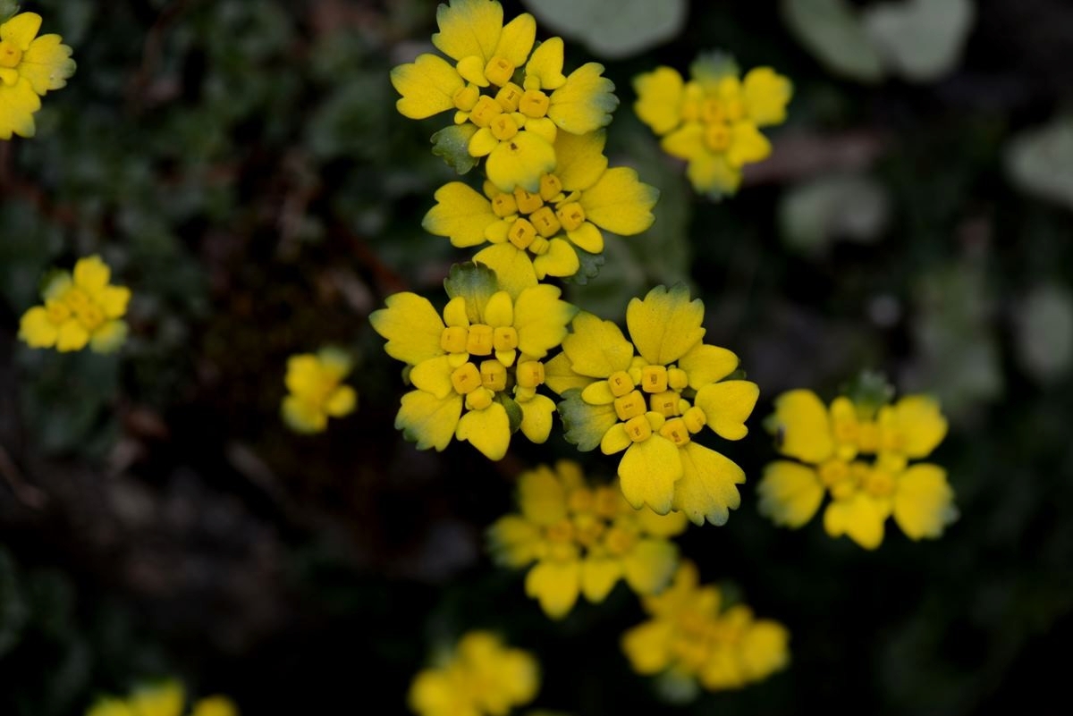 줄지어 핀 노란 금괭이눈이