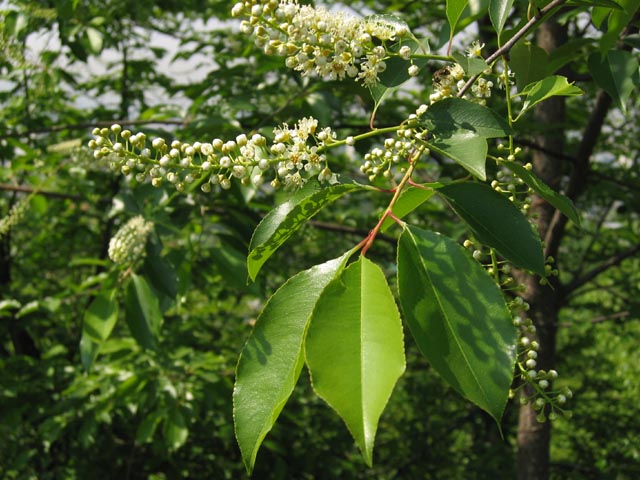 개버찌나무:꽃차례 밑에 잎이 없다.