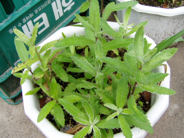 *연보라빛 꽃이 핍니다. 잎에 거친 가시(거치)가 있답니다.