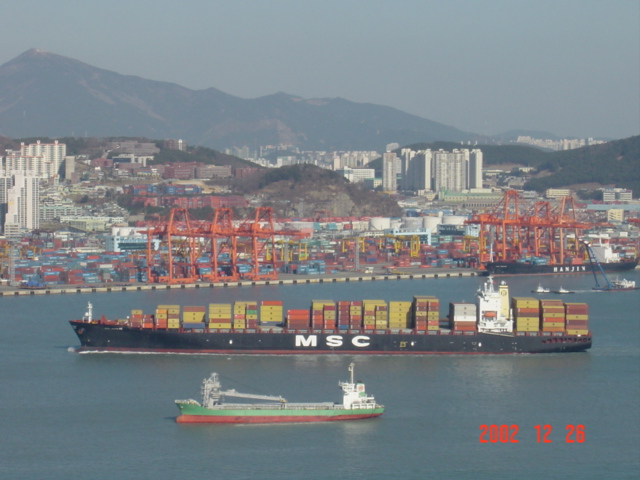 입항하는 컨 화물선..