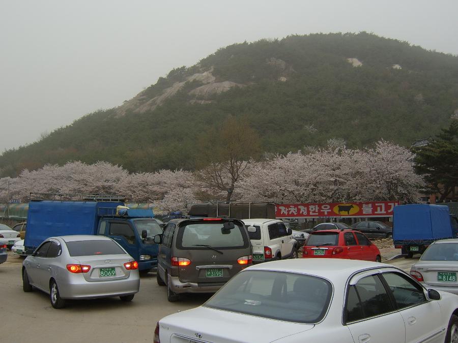 황사가 아니드라도 벚꽃앞에 진을 친 상점때문에 꽃구경 분위기는 아니것 같심미더.