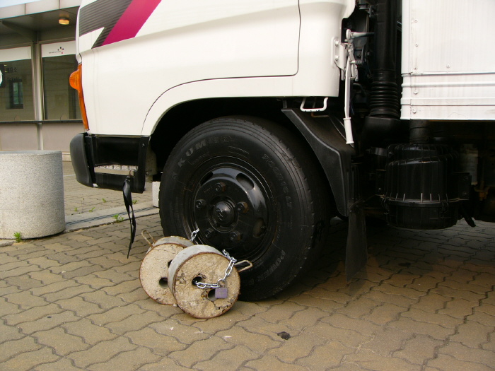 아마도 주차구역이 아닌곳에 주차하여 쌍족쇄를 채워 놓은 듯...