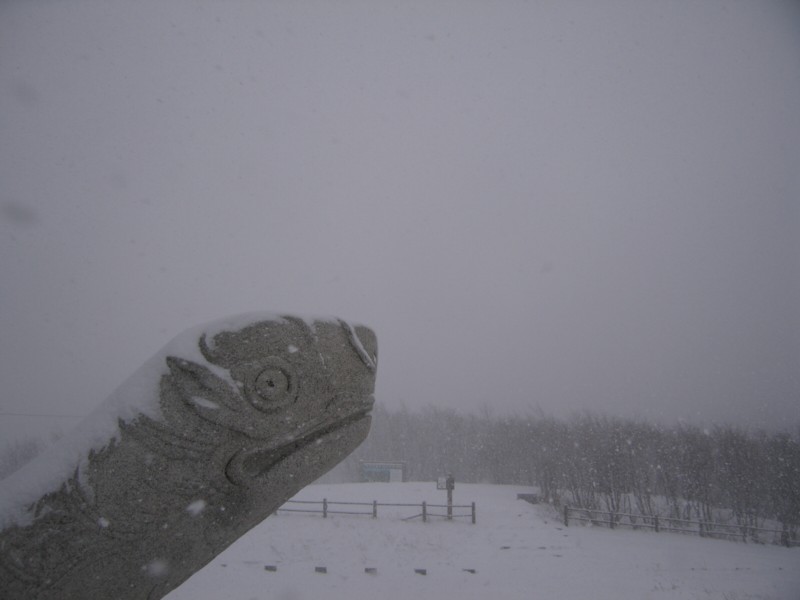 옛 대관령 하행휴게소 영동고속도로 준공 기념비 (해발 865m)에 함박눈이 펑펑내립니다.